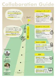 メンバー紹介や使用ツールの案内、各フェーズでの流れをまとめ、初めての方でも安心して依頼ができるよう配慮しています。